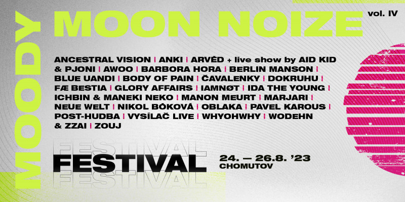Festival Moody Moon Noize vol. 4 oznamuje kompletní program. K dříve oznámeným jménům jako Berlin Manson, Post-hudba, Manon meurt nebo Nikol Bókové přibývá dalších 14 programových bodů včetně slovenského rapera Čavalenkyho, čerstvé vítězky soutěže Startér Radia Wave Marjari, německého producenta Zouje nebo vybraných zástupců aktuální rapové a elektronické scény. Moody Moon Noize vol. 4 se odehraje během tří dnů 24.–26. srpna 2023 v Chomutově, pořadatelé čtvrtého ročníku butikového festivalu – hudební magazín Full Moon, promotérské platformy Heartnoize a Mood a místní spolek Kuprospěchu – oživí hned několik pozoruhodných městských prostor, například Oblastní muzeum, kostel sv. Ignáce, Městský park nebo barokní jezuitskou kolej.